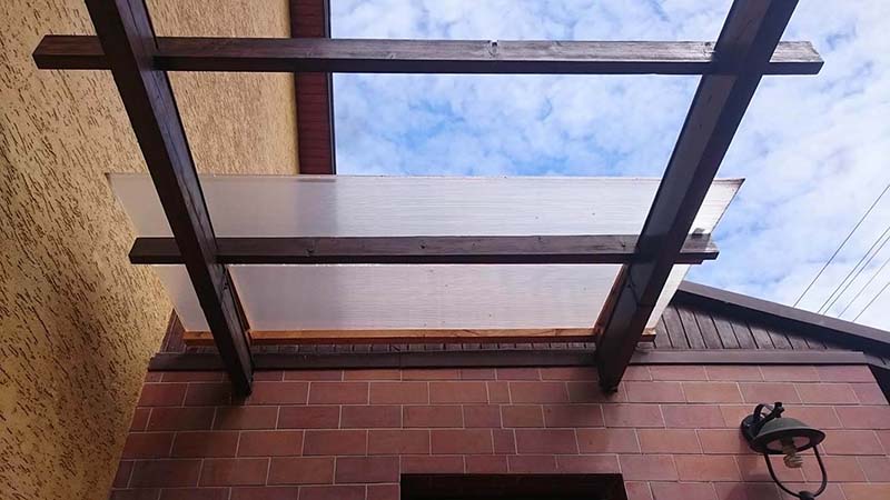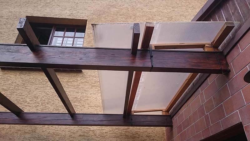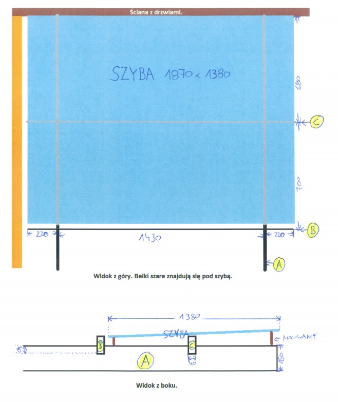 Chciałbym zamontować szybę przeźroczystą nad wejściem. Daszek zastąpi widoczną na zdjęciach pleksi. Uchwyty powinny być jak najmniej widoczne.