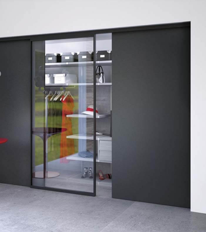 2) Drzwi do garderoby – szkło zwykłe, profile czarne.