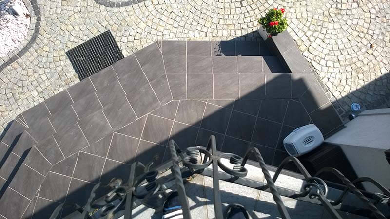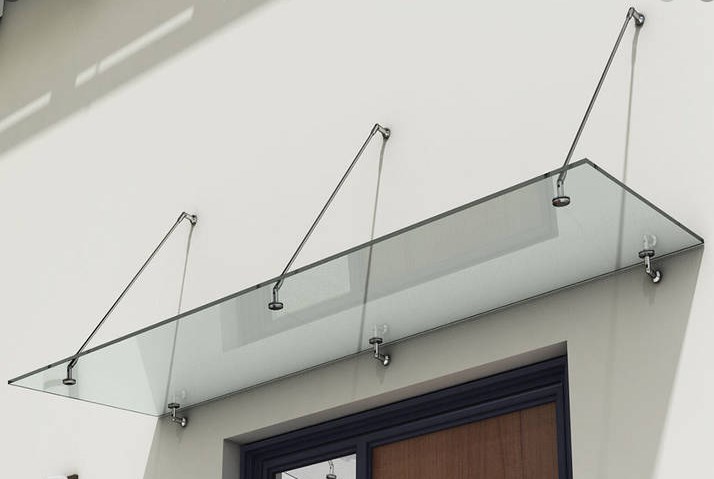 Stosujemy szkło bezpieczne, laminowane, hartowane. U Pana kształt daszku szklanego jest dość nietypowy wymagający indywidualnego rozwiązania. Podczas pomiarów omówimy szczegóły.