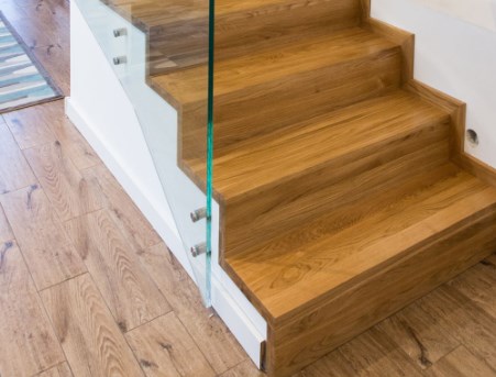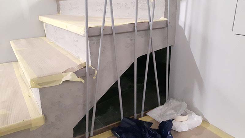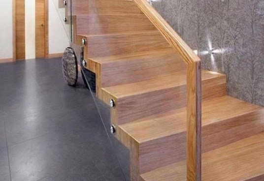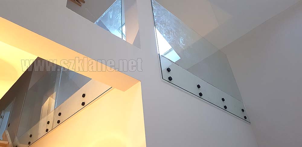 2) szyba pod schodami – montowana za pomocą rotuli (tuleii) (pręty balustrady zostaną zdemontowane na czas montażu)
